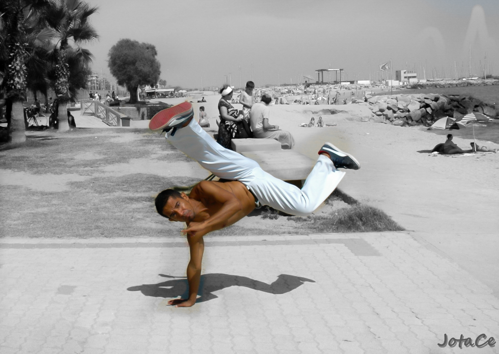 Entramos a la sala e inmediatamente nos preguntó si éramos nuevos, respondimos que si y nos ubicó entre los nuevos alumnos. Nos habló unos minutos y nunca dejó de sonreír, por algo tenía ese nombre de capoeira “Alegría”. Finalmente dijo: “Muy bien chicos, a gingar” y hasta el día de hoy no dejo de hacerlo.